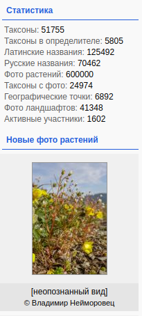 | Dmitry Oreshkin | Вчера перевалили за 580 тыс. фото растений и лишайников. |
