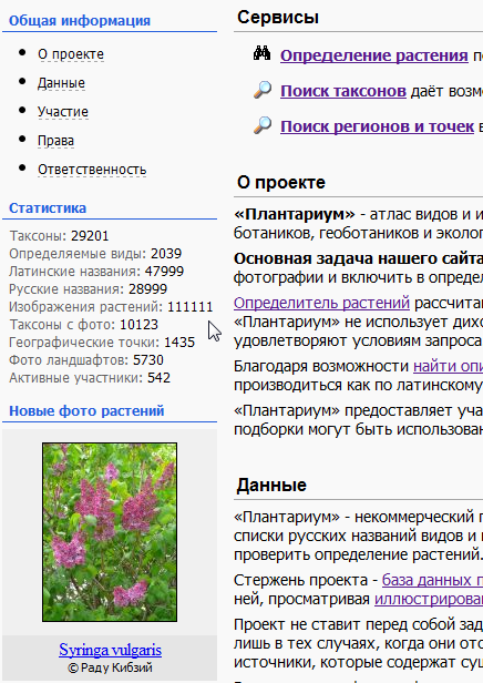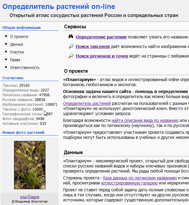 В любом случае, коллекция Плантариума во многом уникальна, т.к. уже сейчас она является одной из самых обширных а сети как по количеству видов, так и по охвату территории. Главное же - изображения многих видов Вы не найдёте ни на одном другом сайте. |