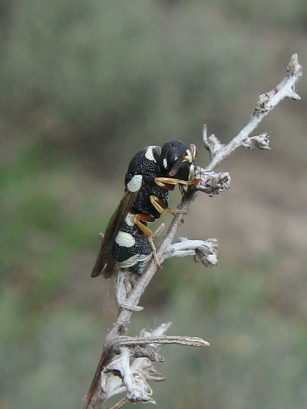 Самец Brachyodynerus quadrimaculatus сидит на ветке, не знаю, что он ждет.jpg Самка Eustenancistrocerus amadanensis что-то ищет в соплодии кольраушии.jpg | | Alexander Fateryga | Вот еще такие есть: