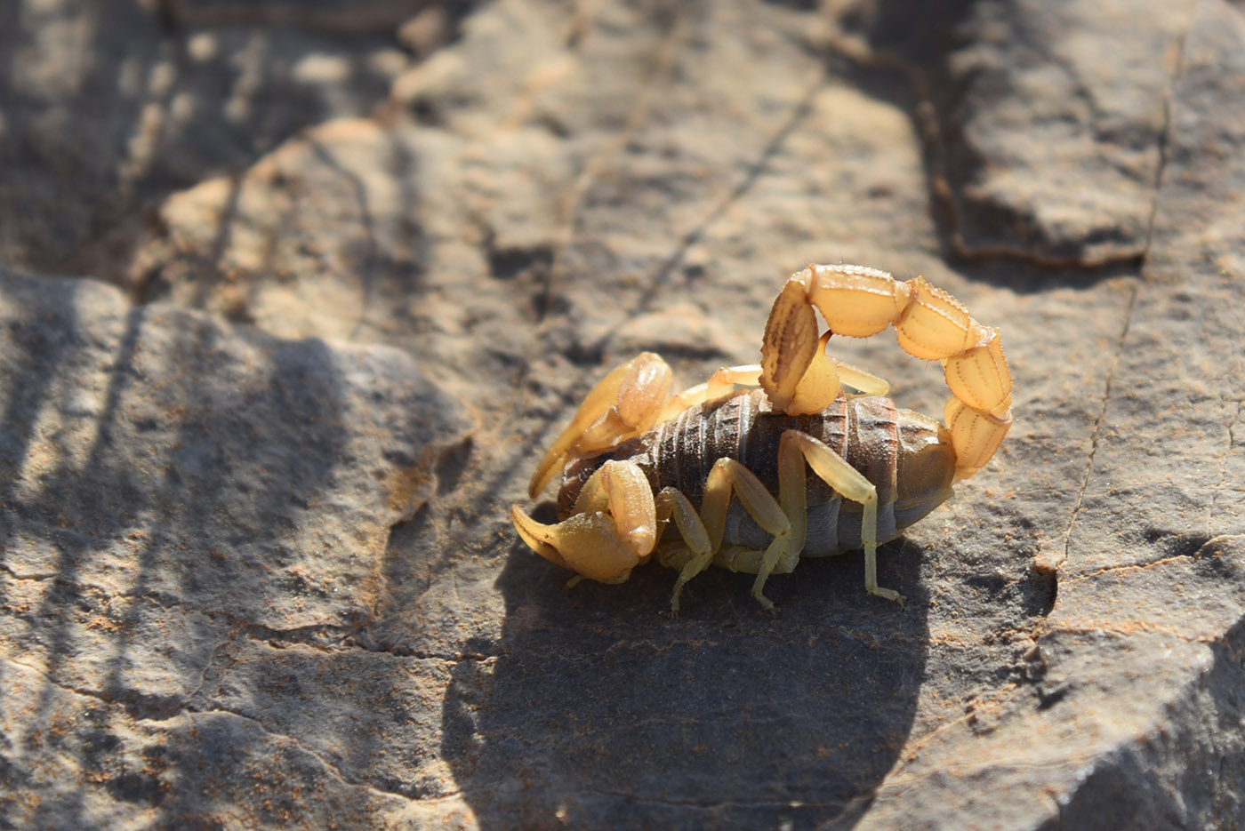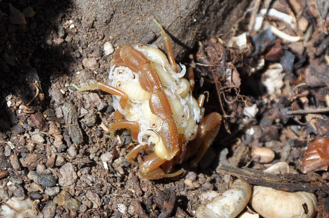 В Таджикистане скорпионы встречаются очень часто, почти под каждым более или менее крупным камнем. В Алматинской области (снимок самки с потомством из гор Чулак) встречаются намного реже. |