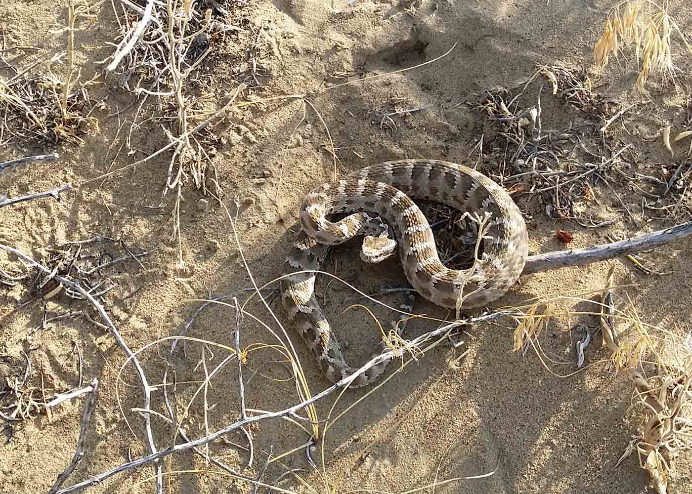 Пластичность этих змей во многом обязана живорождению. Ваш экземпляр из песков относят к отдельному подвиду Gloydius halys ssp. caraganus. Полиморфизм окраски очень широк, так в горах Таласского Алатау около 1/3 популяции окрашены вот так: