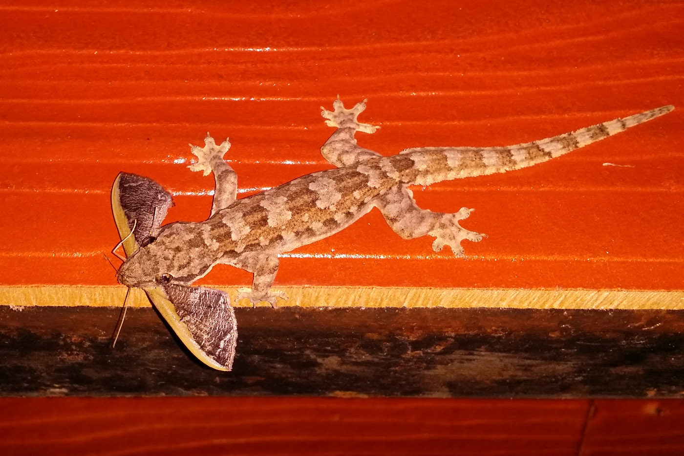 | Vladimir Pankratov | Как гекконов богомолы едят не видел, но вот поимку мегапомпонии размером с ладонь взрослого человека заснять удалось. Казалось, что еще немного - и она улетит вместе с богомолом. |