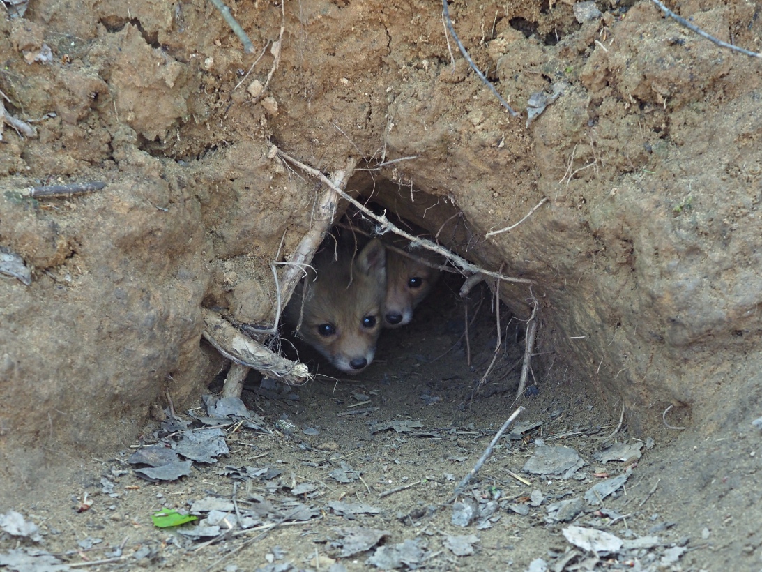 | Денис Карацуба | Они ещё слишком маленькие и не понимают опасности. Потом мамаша им что-то тявкнула из кустов, и они скрылись в глубине норы. |