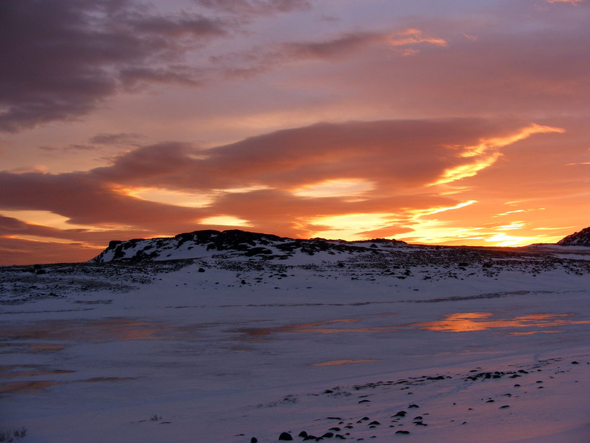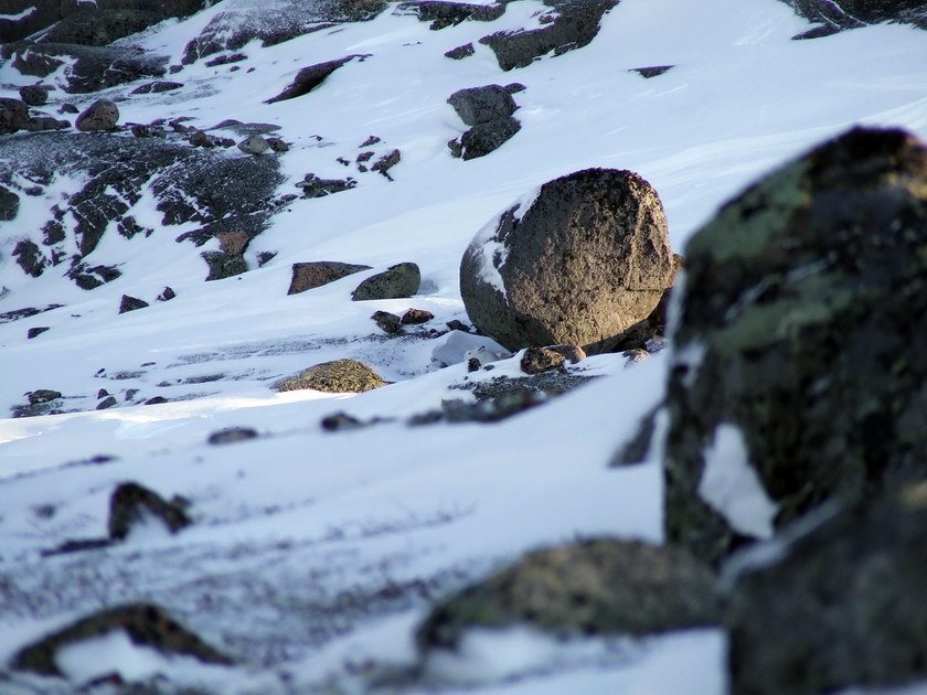 Только у вас камни везде, а прикиньте тот же самый эффект на пространстве "сколько глаз охватит" и "волны" на снегу - огромные и плавные. Почти без теней. А ночью северное сияние было, и оно тоже на этом всём "играло".