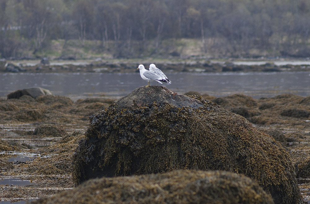 Сизые чайки на камушке.