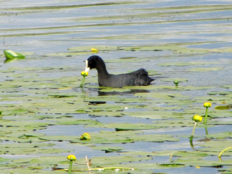 | Оксана Великова | Какие трогательные!  Лысушка-ботаник из семейства пастушковых изучает кубышку жёлтую из семейства нимфейных: