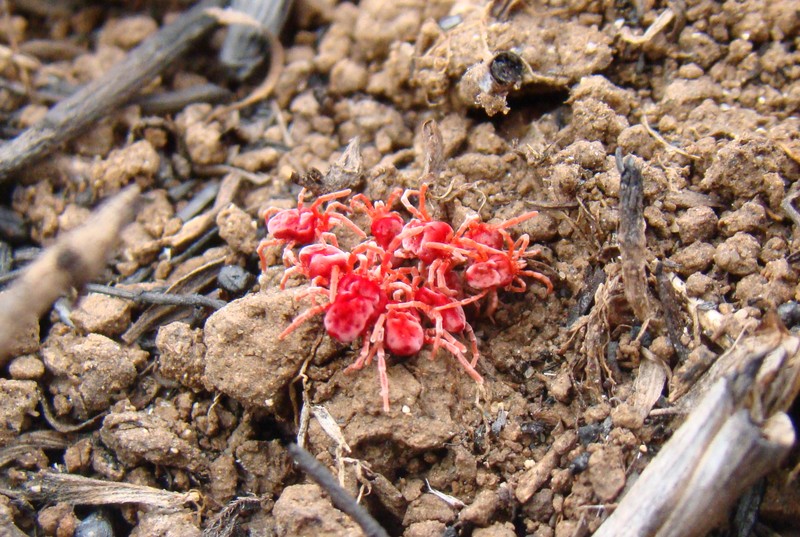 Клещики частенько бывают яркими, только несмотря на кохию рядом, на почве маскировка у этих товарищей как-то не очень удалась  |