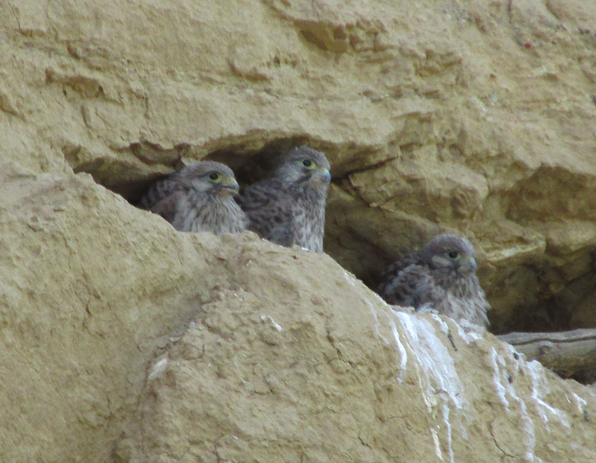 | Alexander Fateryga | Что за птенцы такие? Выглядывали из гнезда, на меня внимания не обращали, ждали маму (или папу?), которая (или который) периодически что-то им приносила, а они, при этом громко щебетали от радости. Взрослая птица прилетала очень быстро, снять не успел, но видимо, это был какой-то сокол.