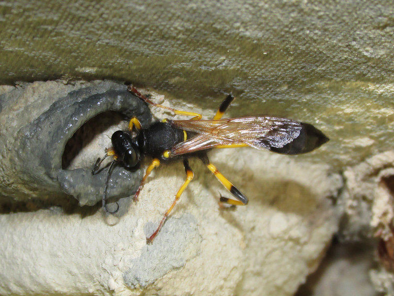 Sceliphron destillatorium строит ячейку гнезда: