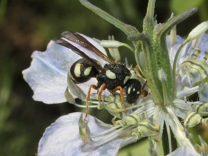 Самец Brachyodynerus quadrimaculatus питается на цветке Nigella arvensis (это растение очень любят осы!).