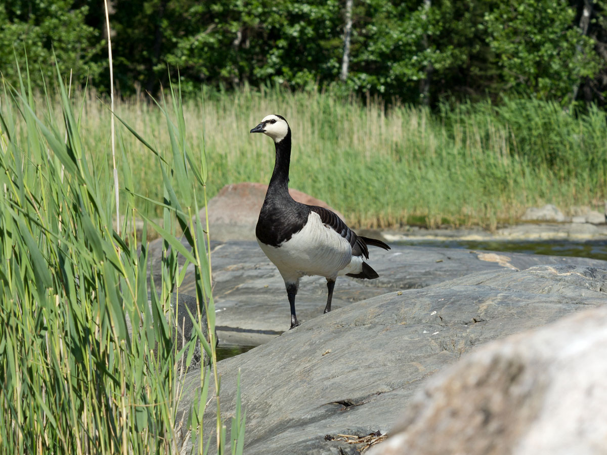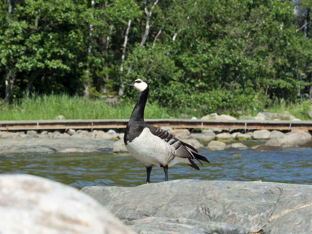 | Andriy Kovalchuk | В Хельсинки это очень обычный синантропный вид - их здесь, наверное, нескрлько тысяч. Осенью сотенные стаи казарок кормятся на убранных полях. Местами вся трава на газонах выедена казарками. Городские птицы почти не боятся человека и легко подпускают на 3-5 метров; только когда появляются птенцы, становятся чуть более осторожными.