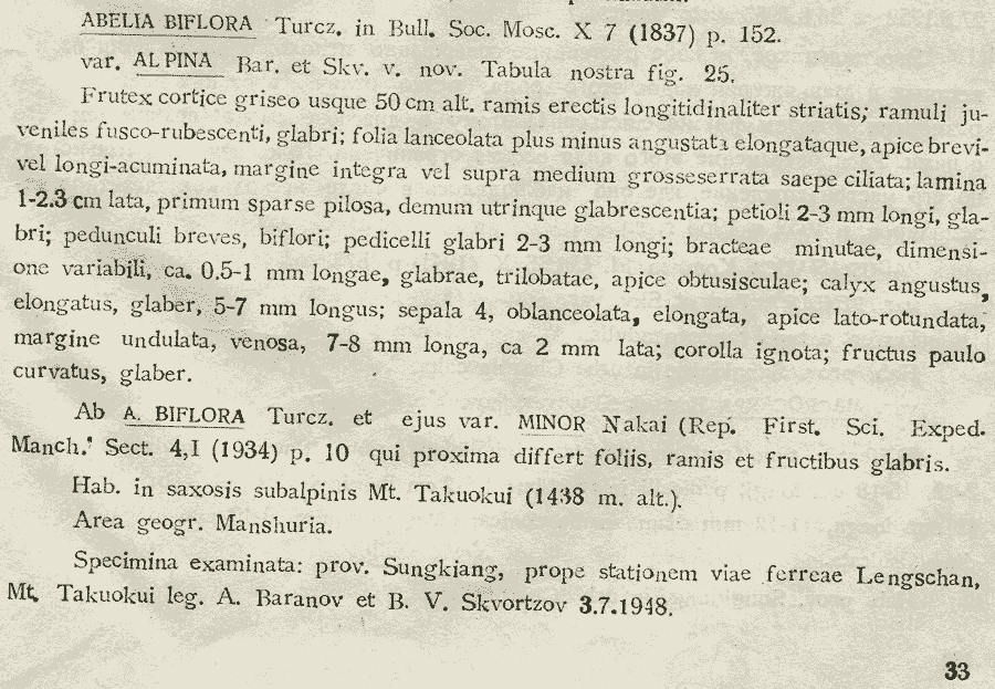 | Andriy Kovalchuk | Протолог Abelia biflora var. alpina Baranov & Skv. (Записки Харбинского общества естествоиспытателей и этнографов 12: 33. 1954):