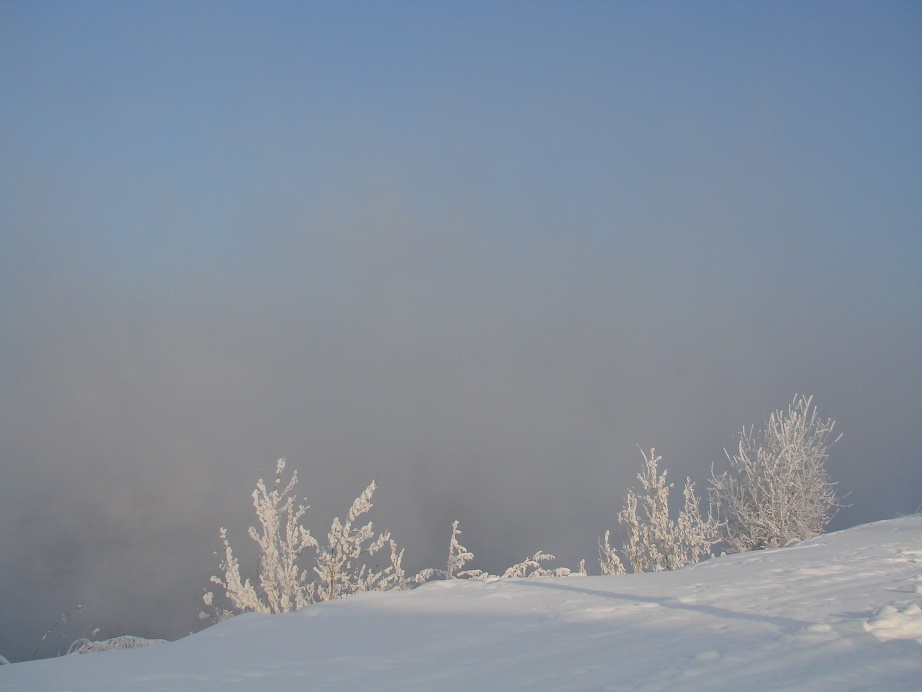 Это берег Ангары, воды не видно, сплошной туман над водой. Видать вода в реке теплее воздуха.