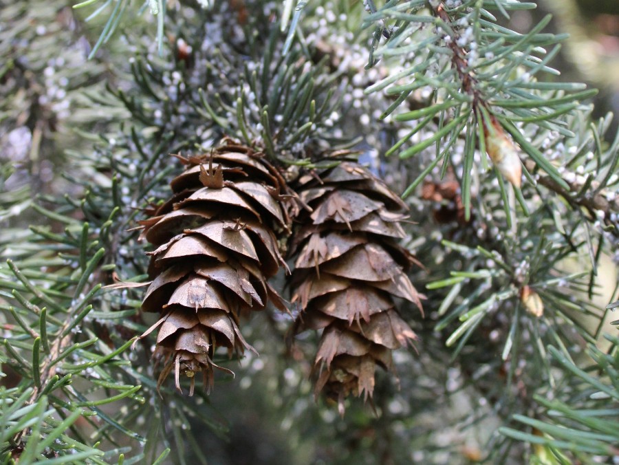У псевдотсуги Мензиса очень харктерные шишки - с вот этими "ласточкиными хвостами".  Ошибиться невозможно. | | Оксана Великова | К ели из сообщения 30 этой темы 02.06.2016 нашлись шишки. Они длиной около 9 см.