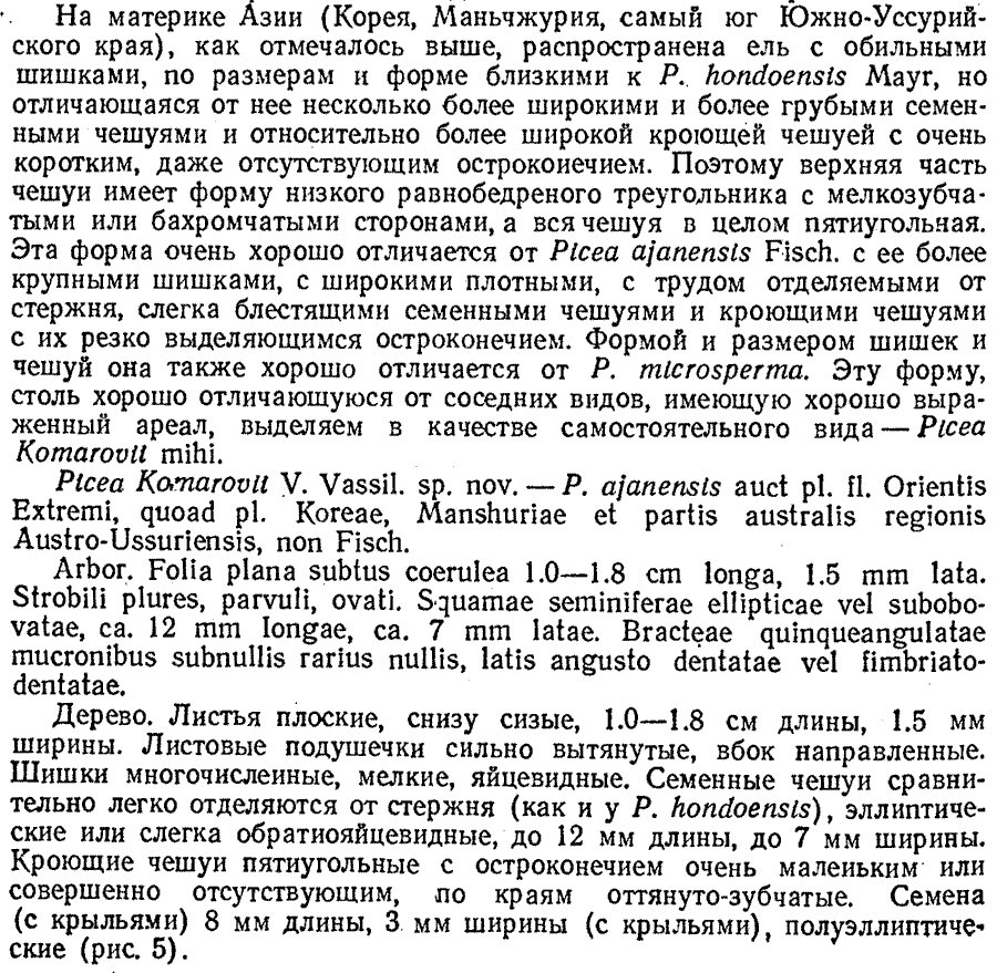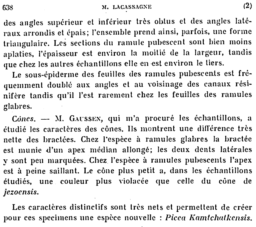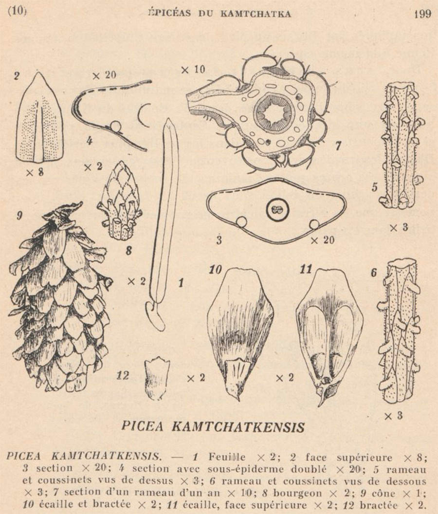 | Andriy Kovalchuk | Латинский диагноз и иллюстрация Picea kamtchatkensis Lacass. (Bulletin de la Société d'Histoire Naturelle de Toulouse 59: 195, 199. 1930):