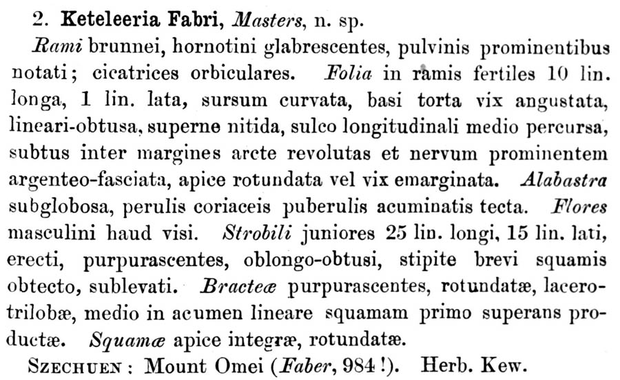 Протолог Keteleeria fabri Mast. (Journal of the Linnean Society. Botany 26: 555. 1902 [21 Oct 1902]):