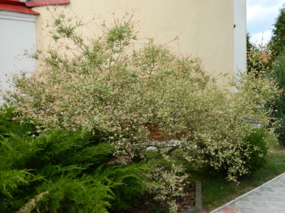 Фото сделано в Белоруссии, Гродненская обл., Щучинский р-н, дер. Василишки в июле 2015 г. на территории костела. Такой же кустарник растет возле всех католических церквей Гродненской обл.