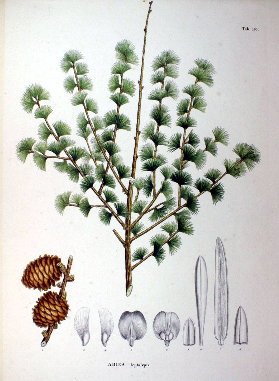 | Andriy Kovalchuk | Иллюстрация Abies leptolepis из работы Siebold, P. F. von & Zuccarini, J. G. "Flora Japonica" (1875):