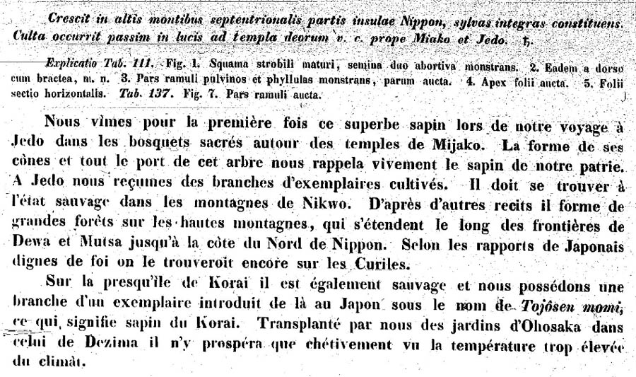Протолог Abies polita Siebold & Zucc. (Flora Japonica 2: 20(-21), t. 111. 1842):