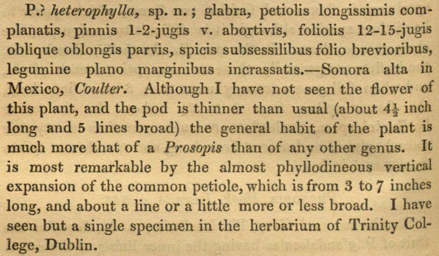Протолог Prosopis heterophylla Benth. (The London journal of botany 5: 82. 1846):