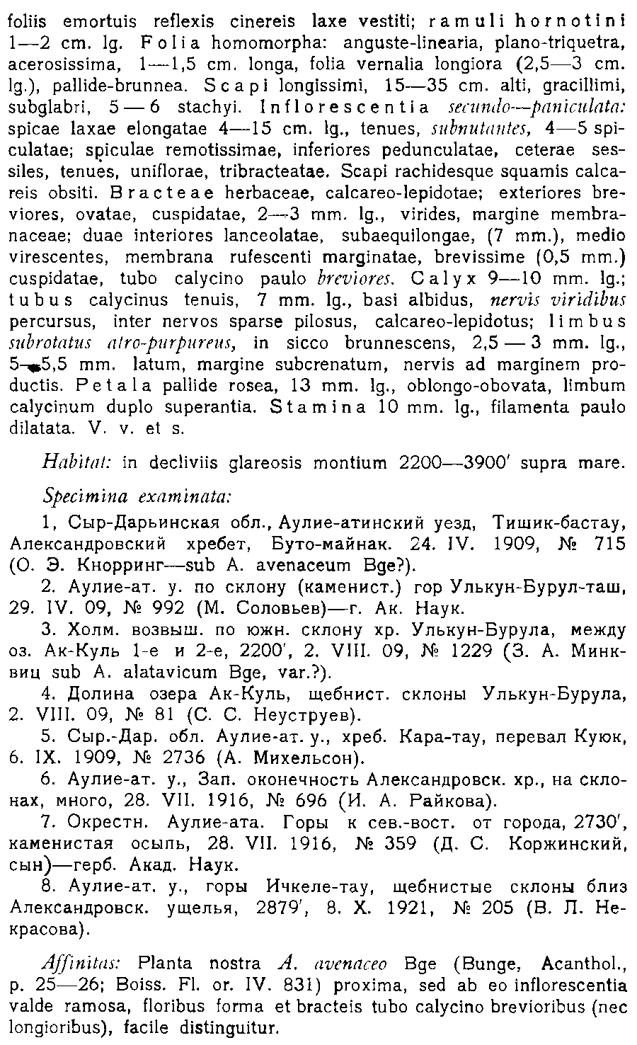 | Andriy Kovalchuk | Протолог Acantholimon aulieatense Czerniak. (Notulae Systematicae ex Herbario Horti Botanici Petropolitani / Ботанические материалы Гербария Главного Ботанического сада РСФСР 4(9-10): 65(-67). 1923):