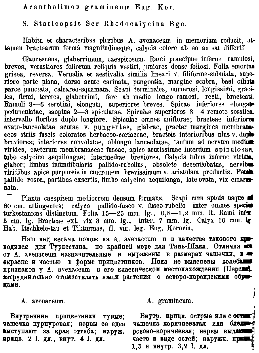 | Andriy Kovalchuk | Протолог Acantholimon gramineum Korov. (Труды Туркестанского научного общества 1: 82. 1923):