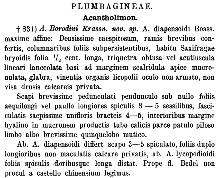 | Andriy Kovalchuk | Протолог Acantholimon borodinii Krasn. (Список растений, собранных в восточном Тянь-Шане летом 1886 года: 96, 128(-129). 1887):