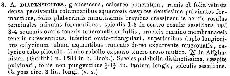 Протолог Acantholimon diapensioides Boiss. (Prodromus Systematis Naturalis Regni Vegetabilis 12: 624. 1848 [5 Nov 1848]):