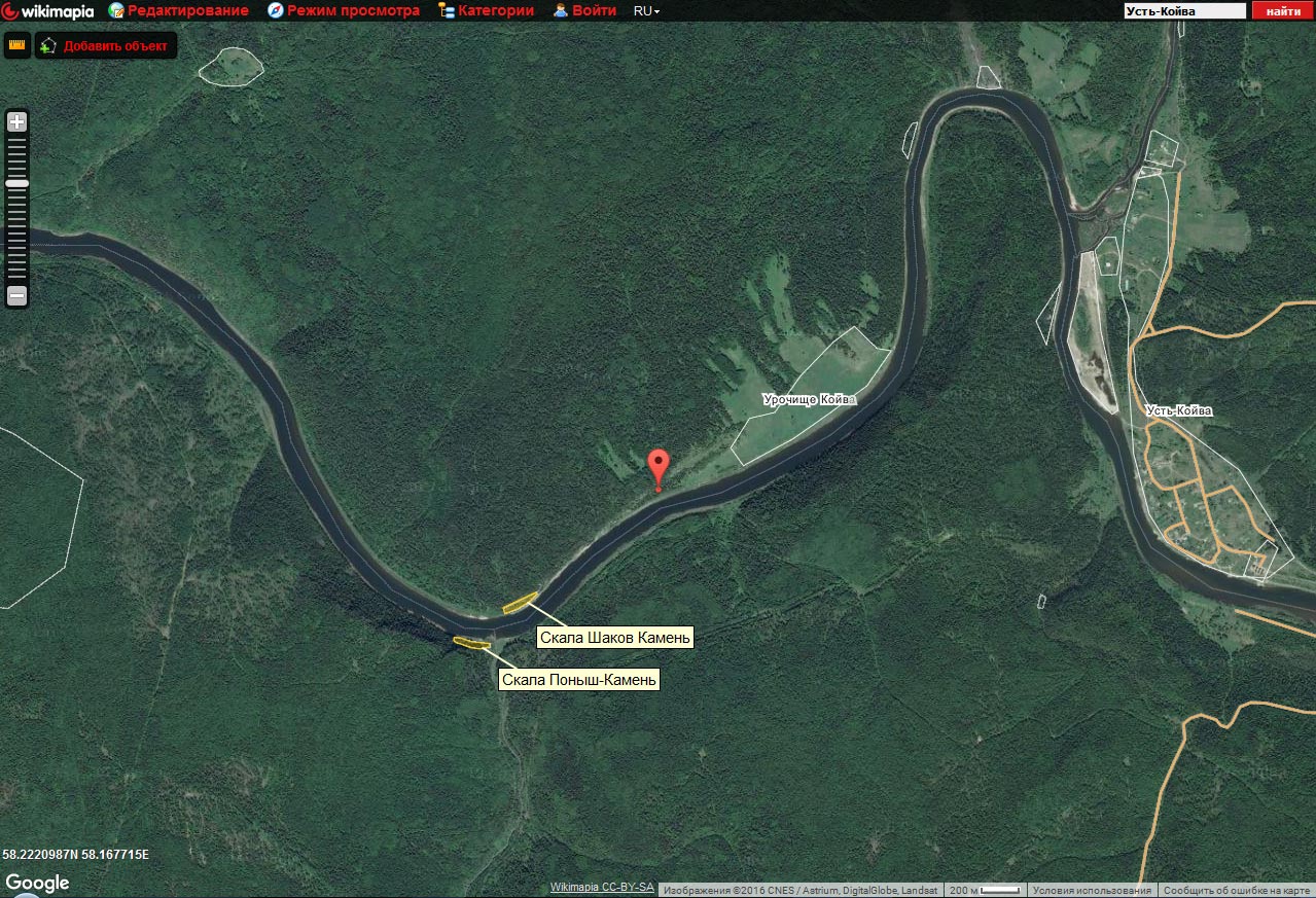 Во-вторых, местоположение, согласно картам Гугла, указано неверно. Как уже отмечалось выше, Шаков камень расположен почти напротив впадения в Чусовую реки Поныш (от впадения чуть выше по течению Чусовой). Точка же находится вблизи урочища Койва (см. карту). | | Игорь Павлов | Спор до бесконечности...У каждого свои карты...яндекс...гугл...Думаю что при внесенных правках ...возражений не последует.  | | Lena Glazunova | Что значит "у каждого есть свои карты"? Вообще-то карта должна соответствовать действительности. И, полагаю, соответствует. | | Игорь Павлов | "- Вы полагаете, все это будет носиться?