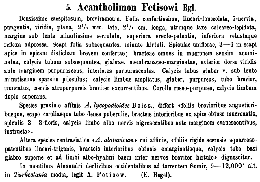 Протолог Acantholimon fetisowii Regel (Decas Plantarum Novarum: 8. 1882 [14 May 1882]):