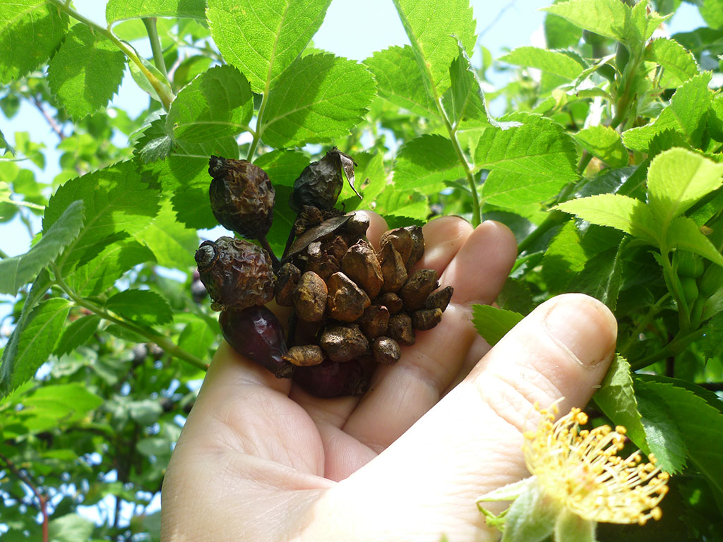 | Светлана Самсонова | периодически нахожу на шиповнике вот такие образования.. слева прошлогодние ягоды, это понятно.. а что у меня в руке  ?