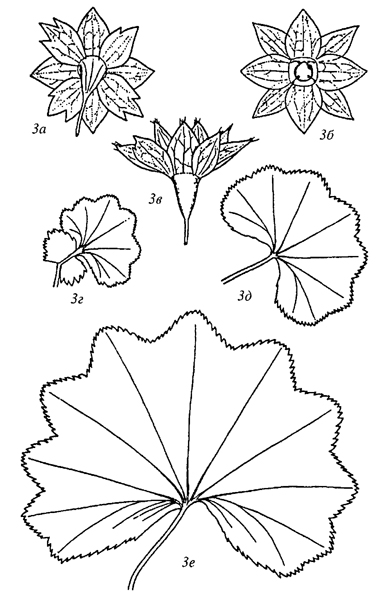 Рисунок Н.Н. Сычак из 10-го тома Флоры Восточной Европы, стр. 529: а), б), в) цветки; г) стеблевой лист; д), е) прикорневые листья.