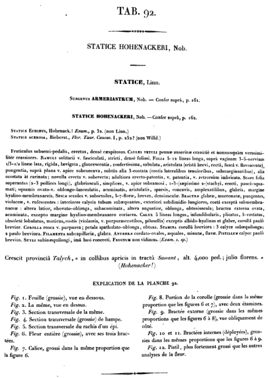 Протолог Statice hohenackeri Jaub. & Spach (Annales des sciences naturelles. Botanique, ser. 2, 20: 252. 1843 [Oct - Nov 1843]):