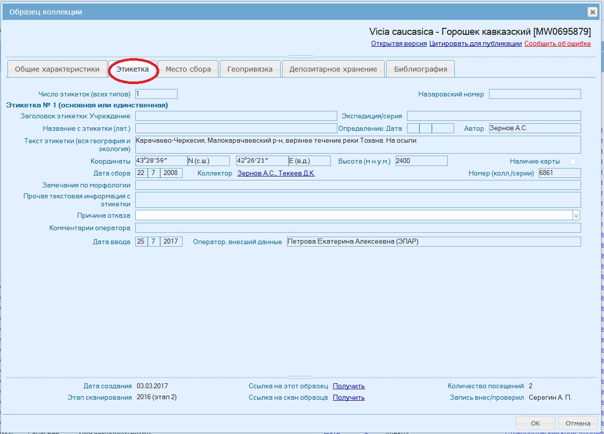 Все сканы Цифрового гербария МГУ ( https://plant.depo.msu.ru/ ) уже во время сканирования индексируются по двум параметрам - таксономия и география. И там, и там возможны ошибки, возникающие по нескольким причинам.