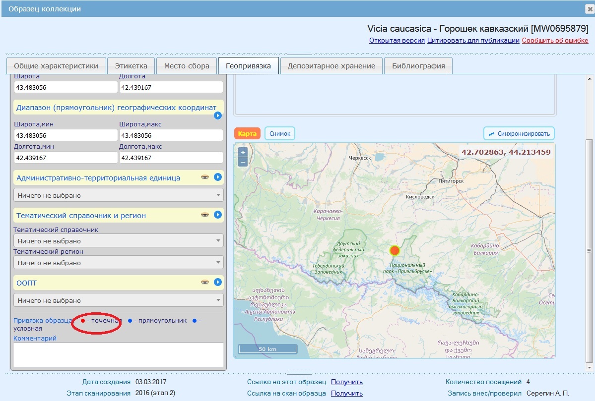 Если подвинуть полосу прокрутки тут, в геопривязке, вниз - будет видна расшифровка обозначения точности (она может быть разной в зависимости от точности описания местоположения в тексте этикетки и наличия\отсутствия координат)