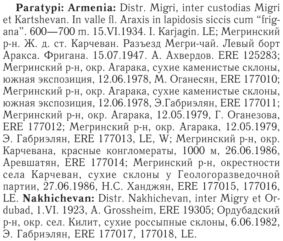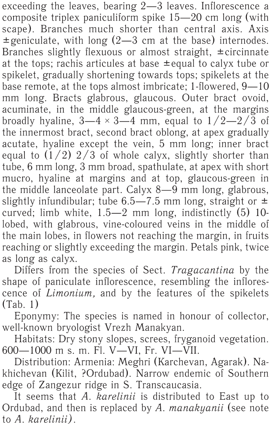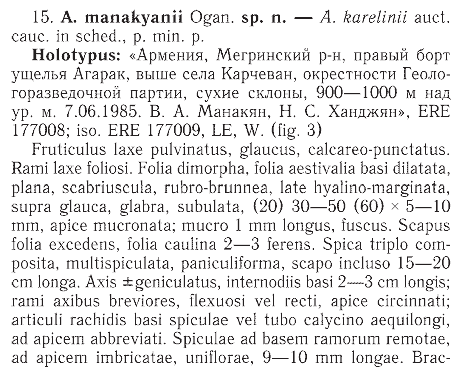 Протолог Acantholimon manakyanii Ogan. (Takhtajania 1: 56(-58). 2011):