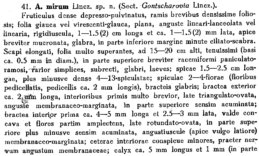 | Andriy Kovalchuk | Протолог Acantholimon mirum Lincz. (Флора СССР, т. 18: 743(-744), 372. 1952):
