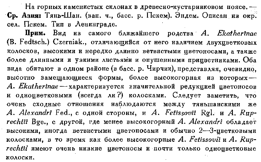 Описание на русском языке (Флора СССР, т. 18: 325-326. 1952):