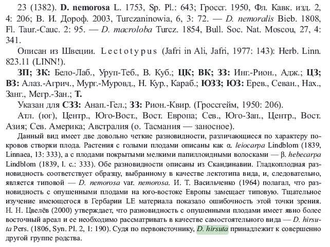 | Evgenii Pakhomov | Судя по названию, именно D. hirsuta должна быть с опушенными плодами |