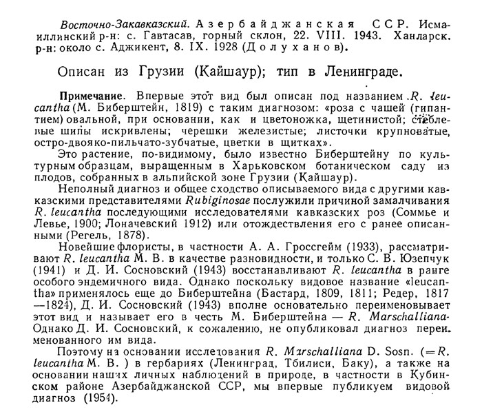 Черепанов, относя Rosa leucantha M. Bieb, к Rosa biebersteiniana Tratt. на какое мнение опирался?