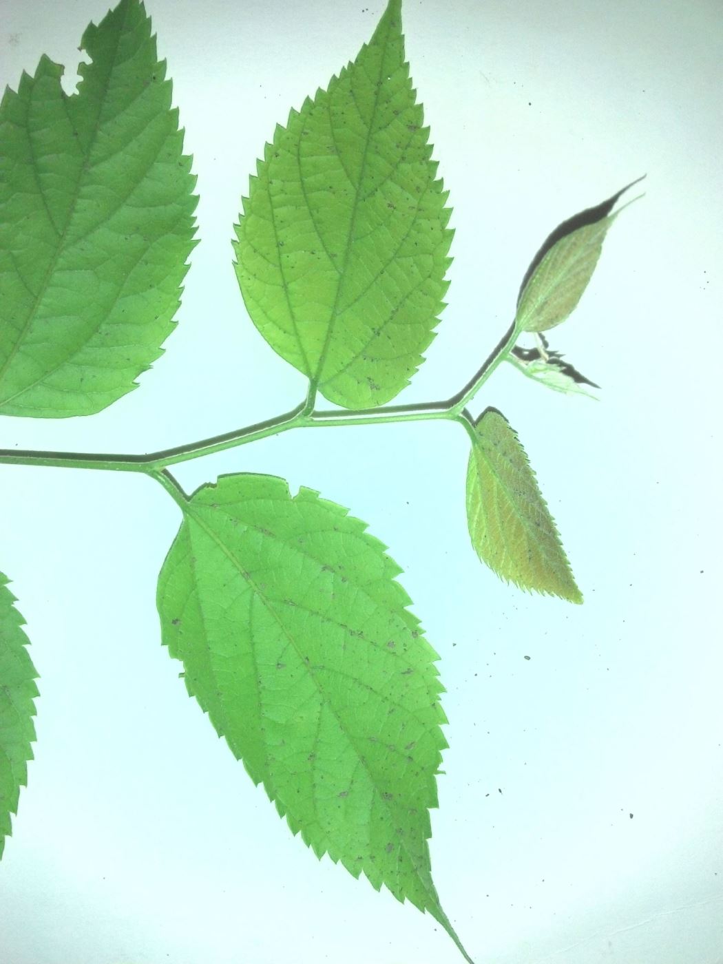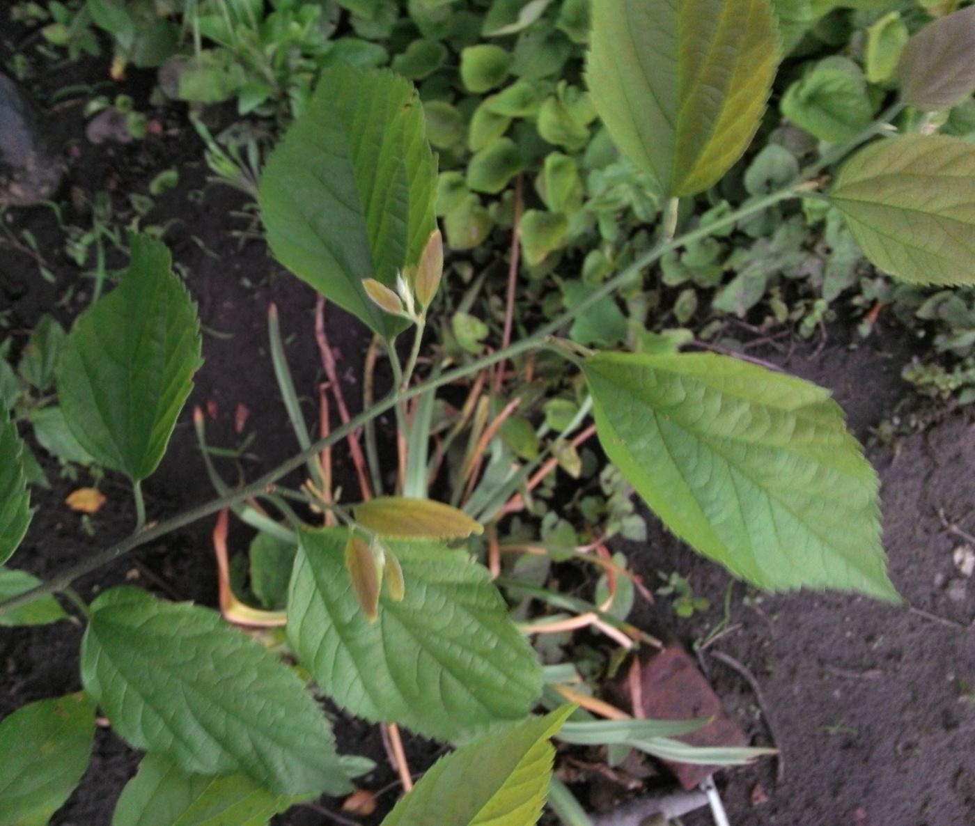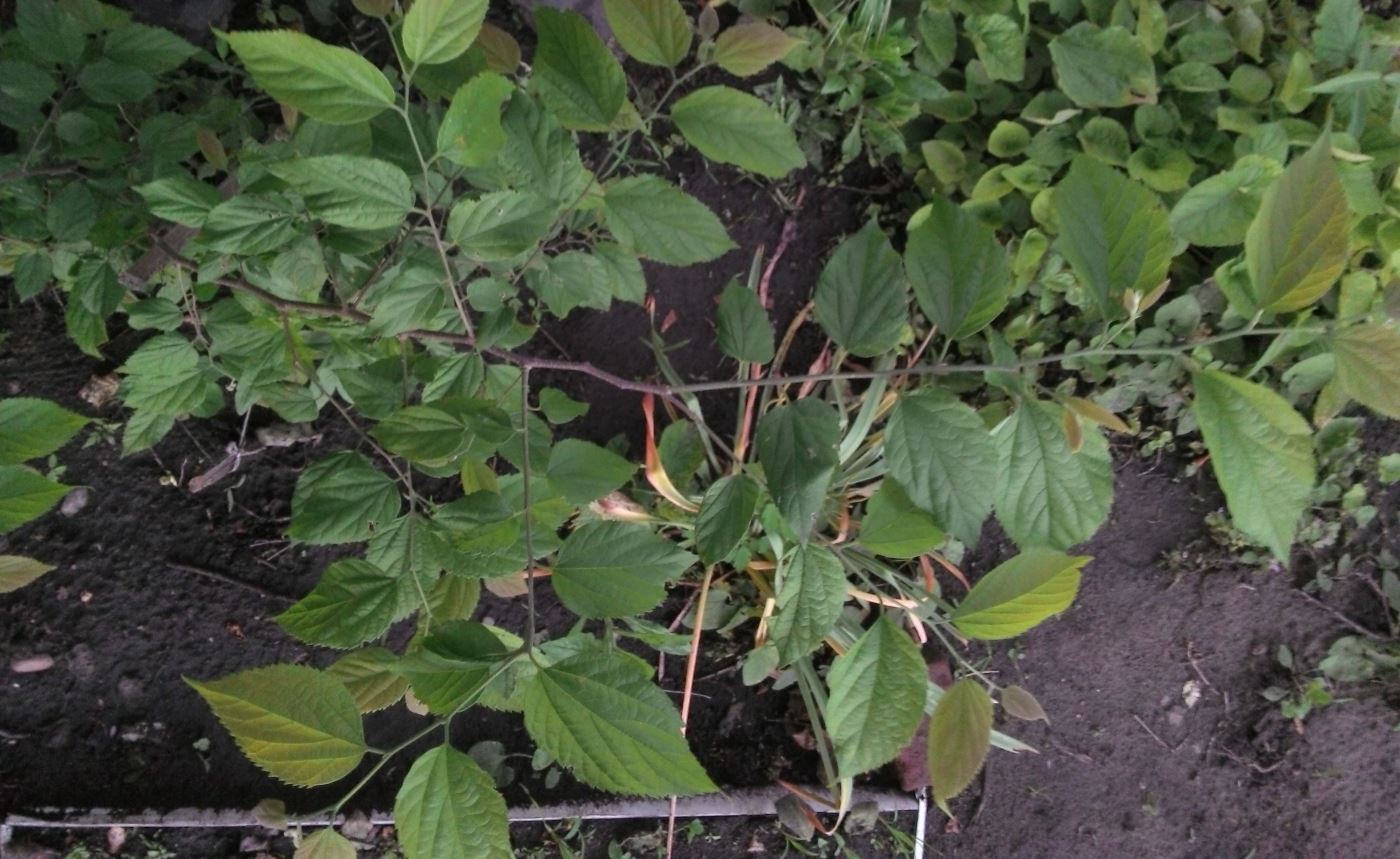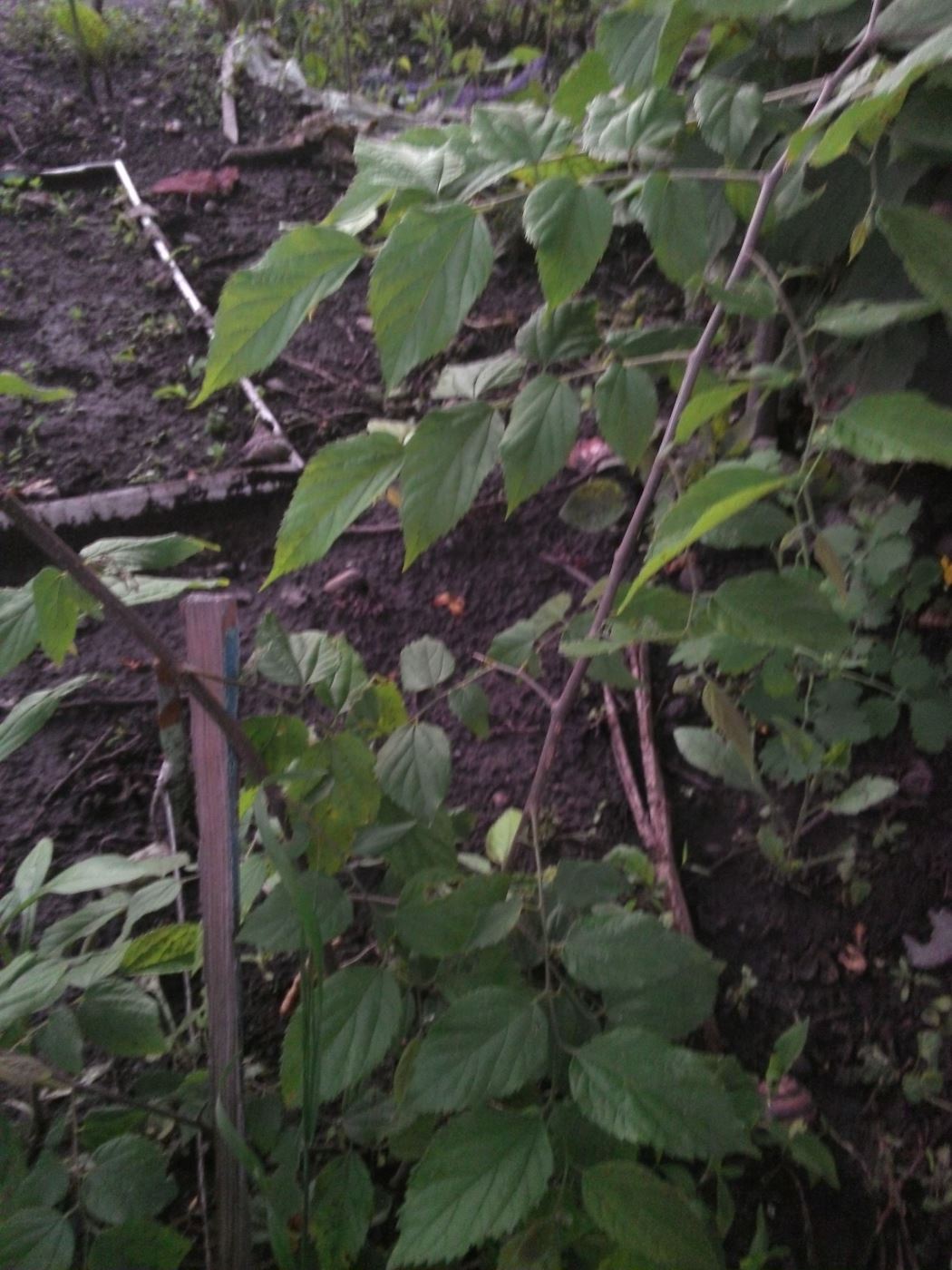 | Vitalii Kamnev | Неизвестный кустарник, вырос или из семян, или "от корня". Участок был запущен много лет, и эта часть - под мощным раскидистым орешником - была заросшей высокоослыми сорняками, хмелем и лианами. Расчищали в июне 2014г не глядя, а через год появились ростки этого кустарника. Успешно перезимовали и теперь хотелось бы узначть что это. IMG_20160525_205514_лиц.jpg |