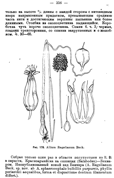 | Denis Melnikov | Более точный вариант: Allium regelianum A.K.Becker ex Iljin - это сокращение согласно международным стандартам. |