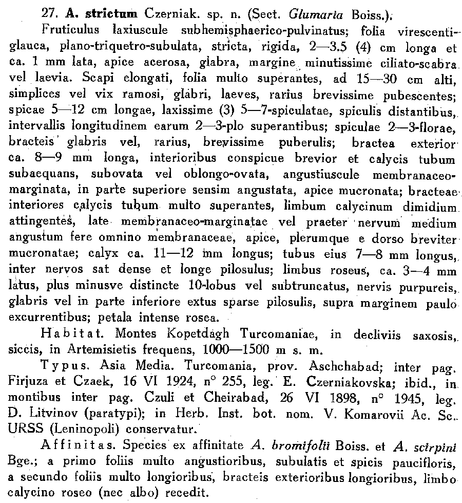 (Флора СССР, т. 18: 734, 323-324. 1952):