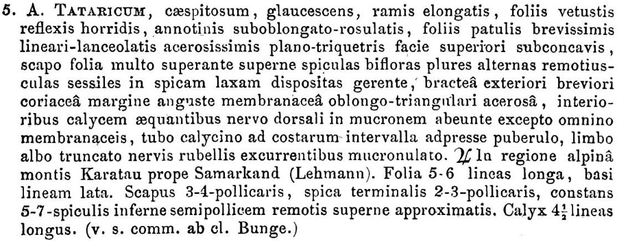 Протолог Acantholimon tataricum Boiss. (Prodromus Systematis Naturalis Regni Vegetabilis 12: 623. 1848 [5 Nov 1848]):