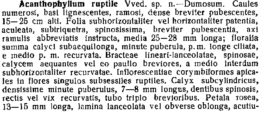 | Andriy Kovalchuk | Протолог Acanthophyllum ruptile Vved. (Ботанические материалы гербария Ботанического института Узбекистанского филиала Академии наук СССР 3: 8(-9). 1941):