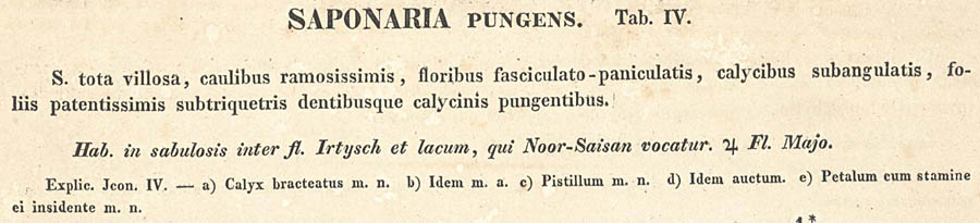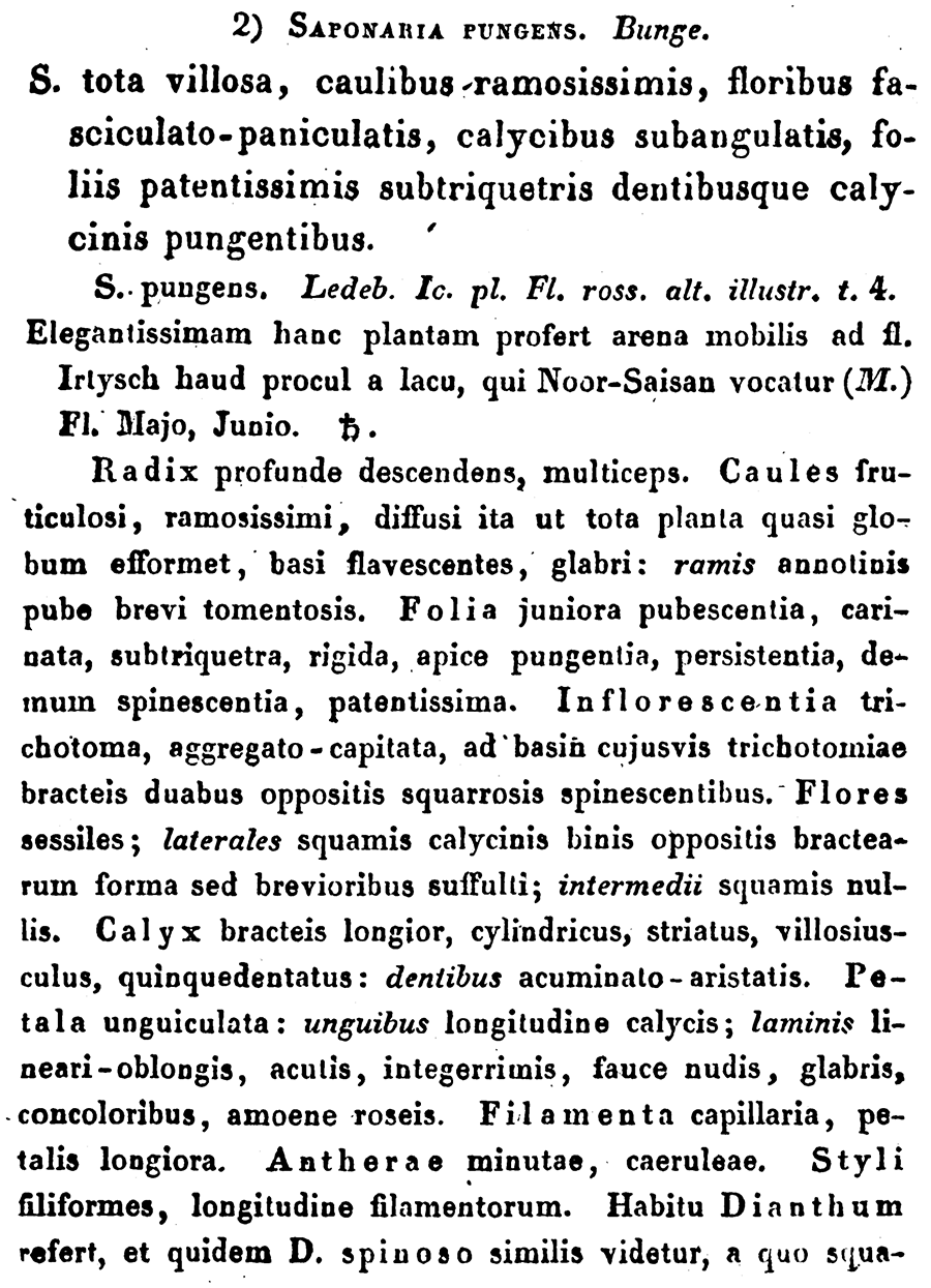 Протолог Saponaria pungens Bunge (Icones plantarum novarum vel imperfecte cognitarum floram Rossicam, imprimis Altaicam, illustrantes 1: t. 4. 1829):
