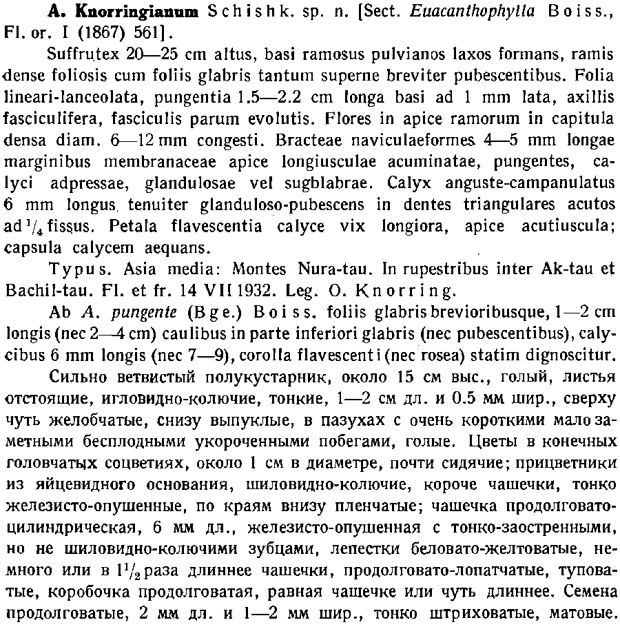 Протолог Acanthophyllum knorringianum Schischk. (Труды Ботанического института АН СССР. Сер. 1. Флора и систематика высших растений 3: 183(-184). 1936)::