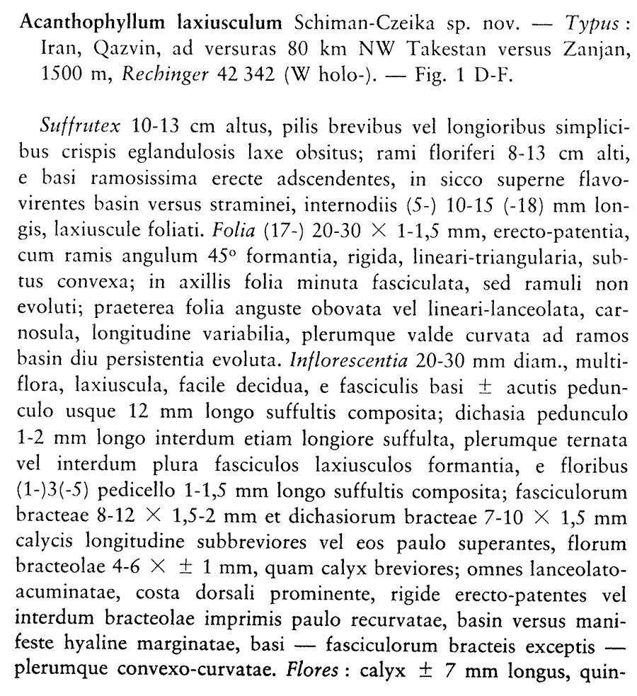 Протолог Acanthophyllum laxiusculum Schiman-Czeika (Bulletin du Jardin Botanique National de Belgique 55(1-2): 120(-121). 1985):