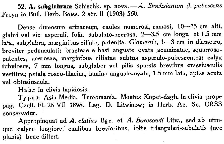 | Andriy Kovalchuk | Протолог Acanthophyllum subglabrum Schischk. (Флора СССР, т. 6: 893, 787-788. 1936):