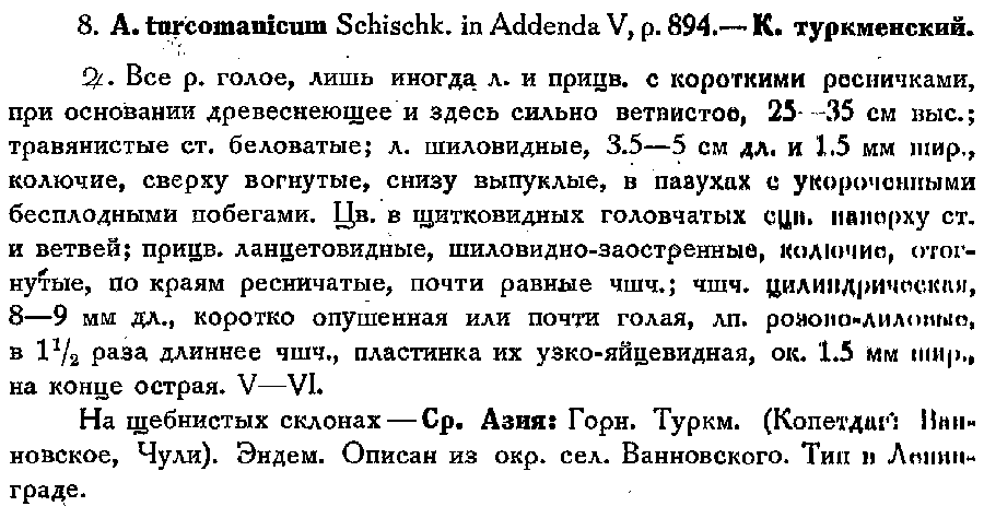 Протолог Acanthophyllum turcomanicum Schischk. (Флора СССР, т. 6: 894, 789. 1936):